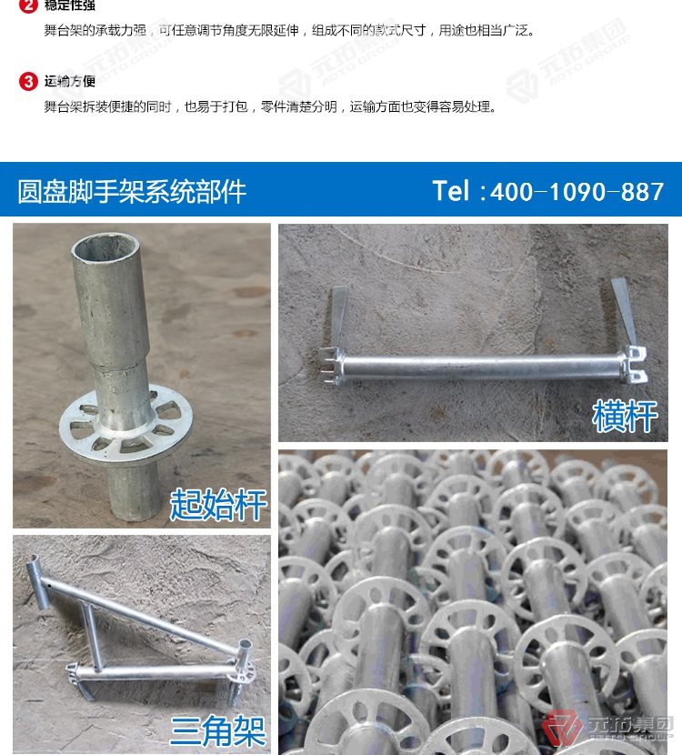 脚手架批发找元拓,天津和顺昌是元拓集团天津工厂直销盘式脚手架,圆盘式脚手架具有基本构件少、架设及拆卸作业方便、施工工效高、承载力强等特点,被广泛应用于桥梁、隧道、电力、石化、造船、铁路、机场、码头等工业及民用建筑的工程领域。相对于钢管扣件式脚手架和碗扣式脚手架,圆盘脚手架有不可替代的优势。